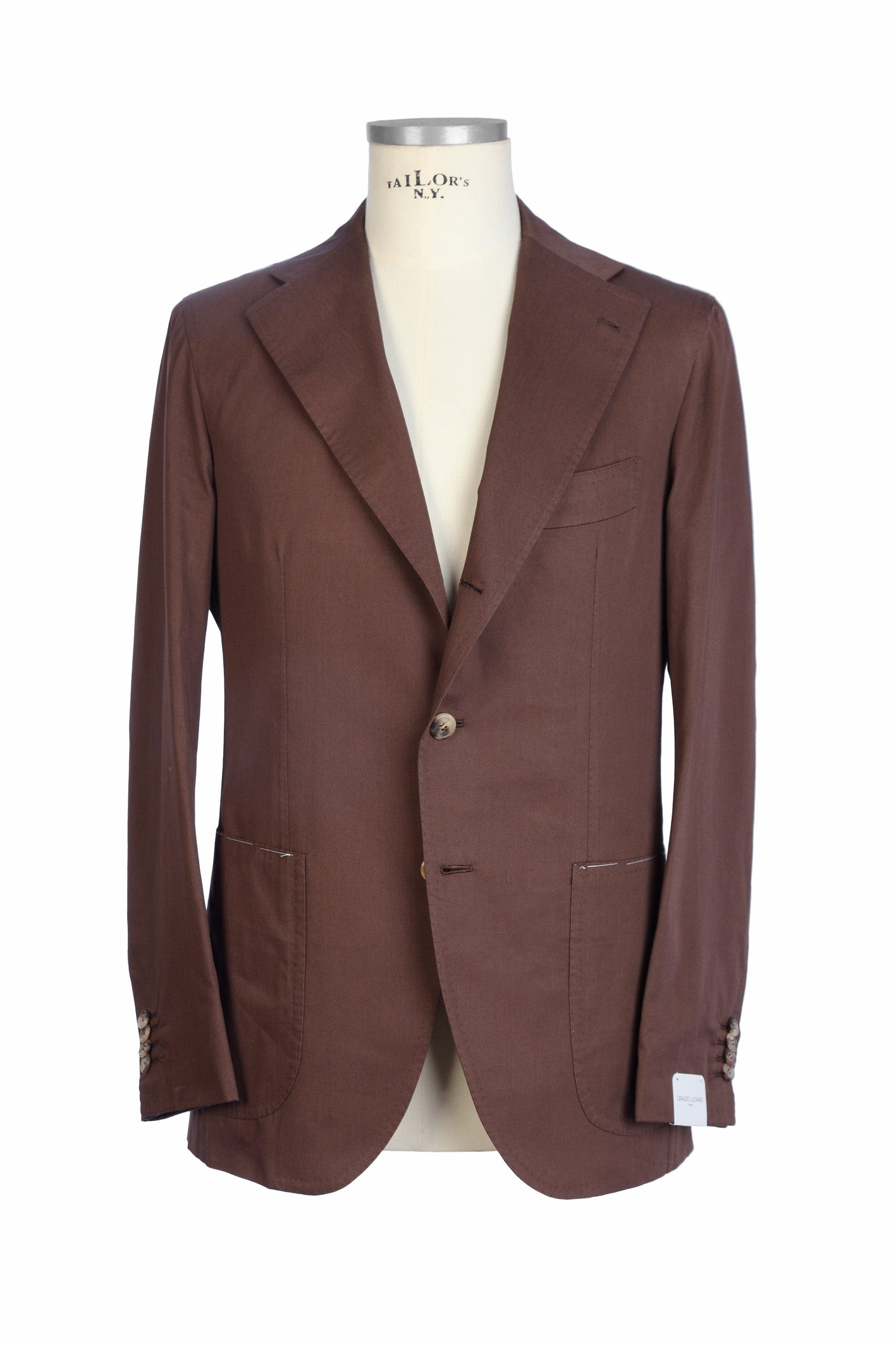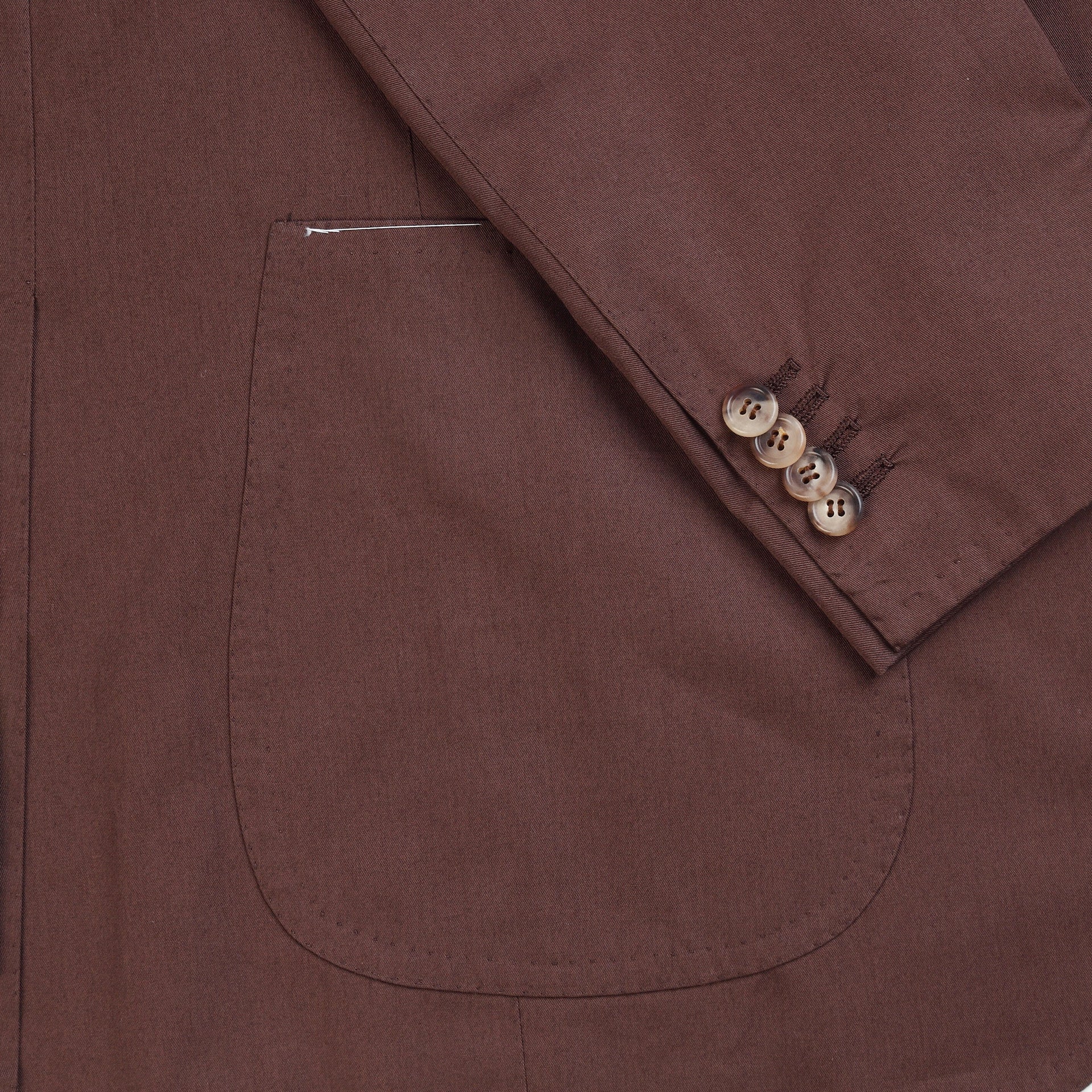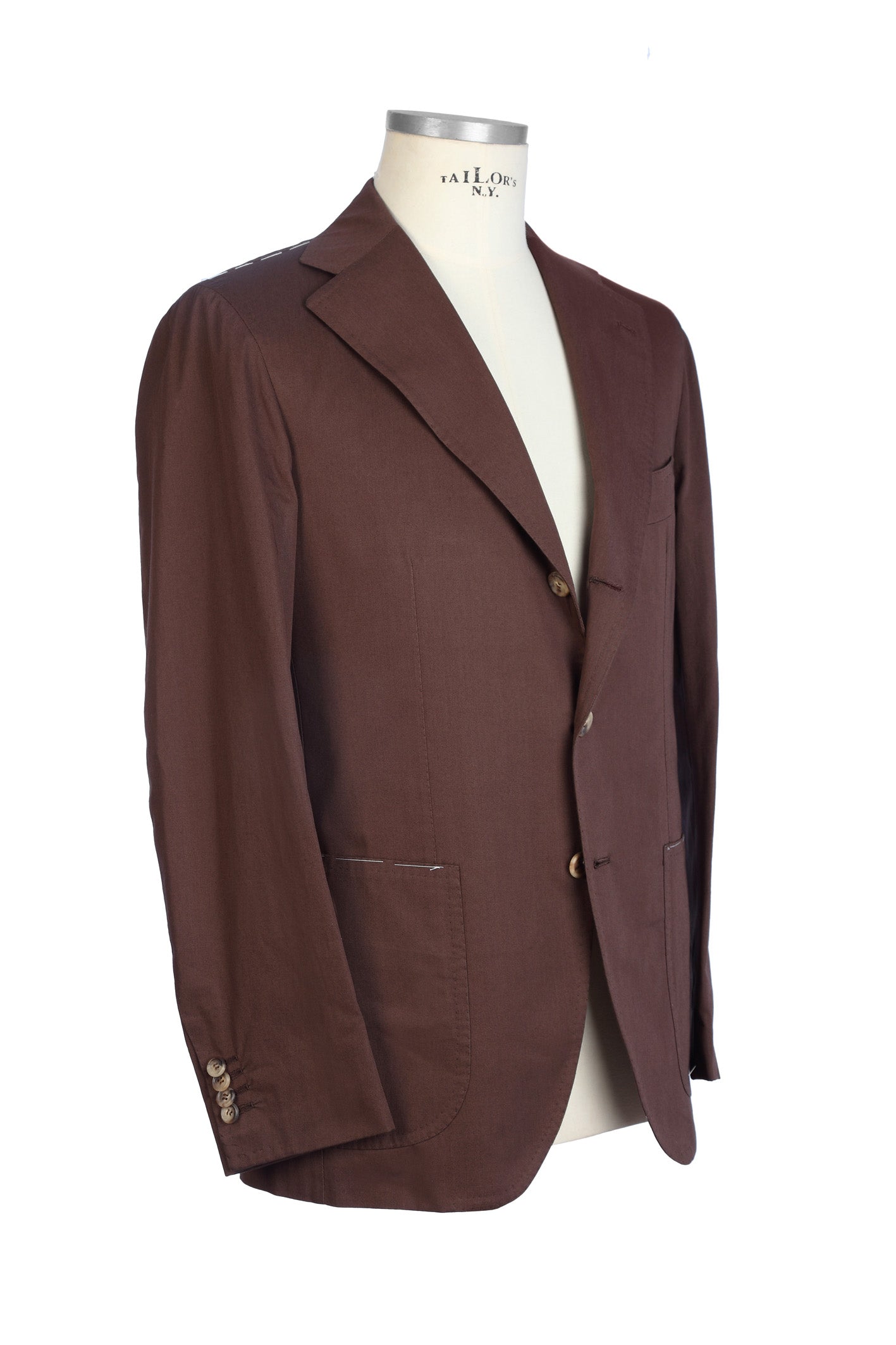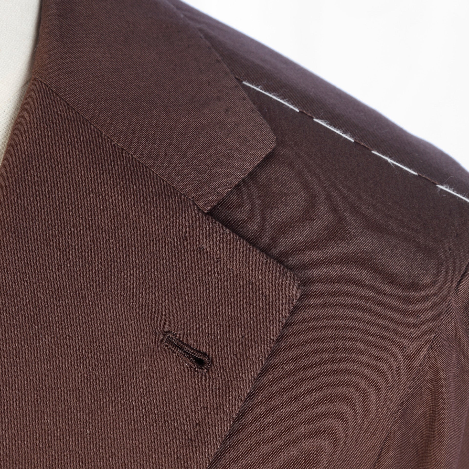 This brown tobacco cotton blazer has been tailored in Italy from a crispy cotton cloth from Loro Piana. This piece has a lightweight, unstructured profile, so you can move around comfortably without feeling restricted. Wear yours with a grandad-collar shirt and drawstring trousers.