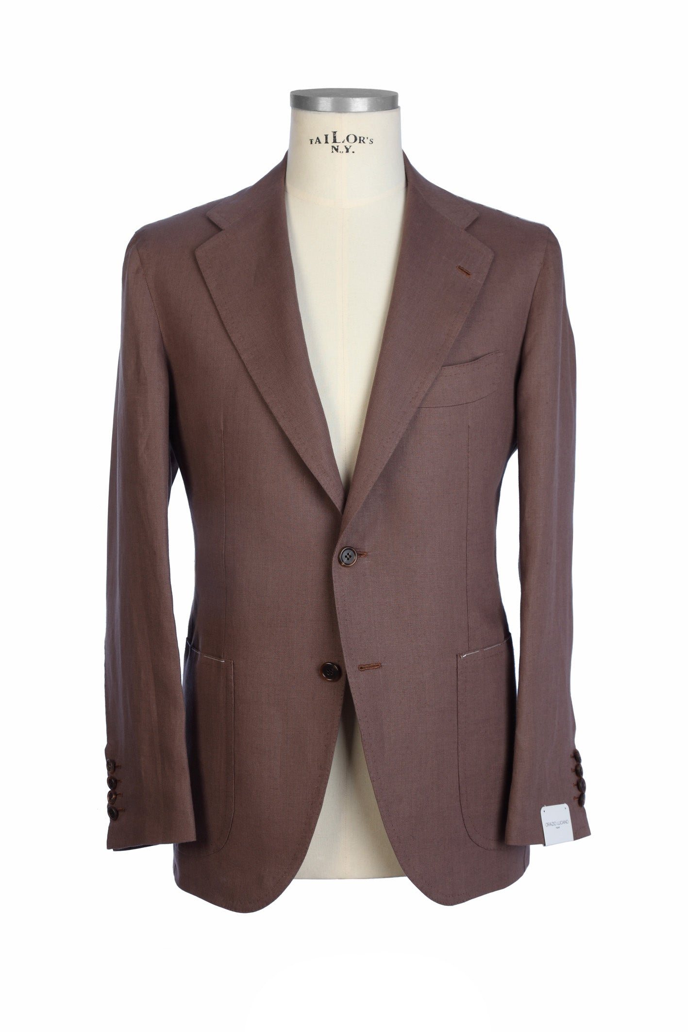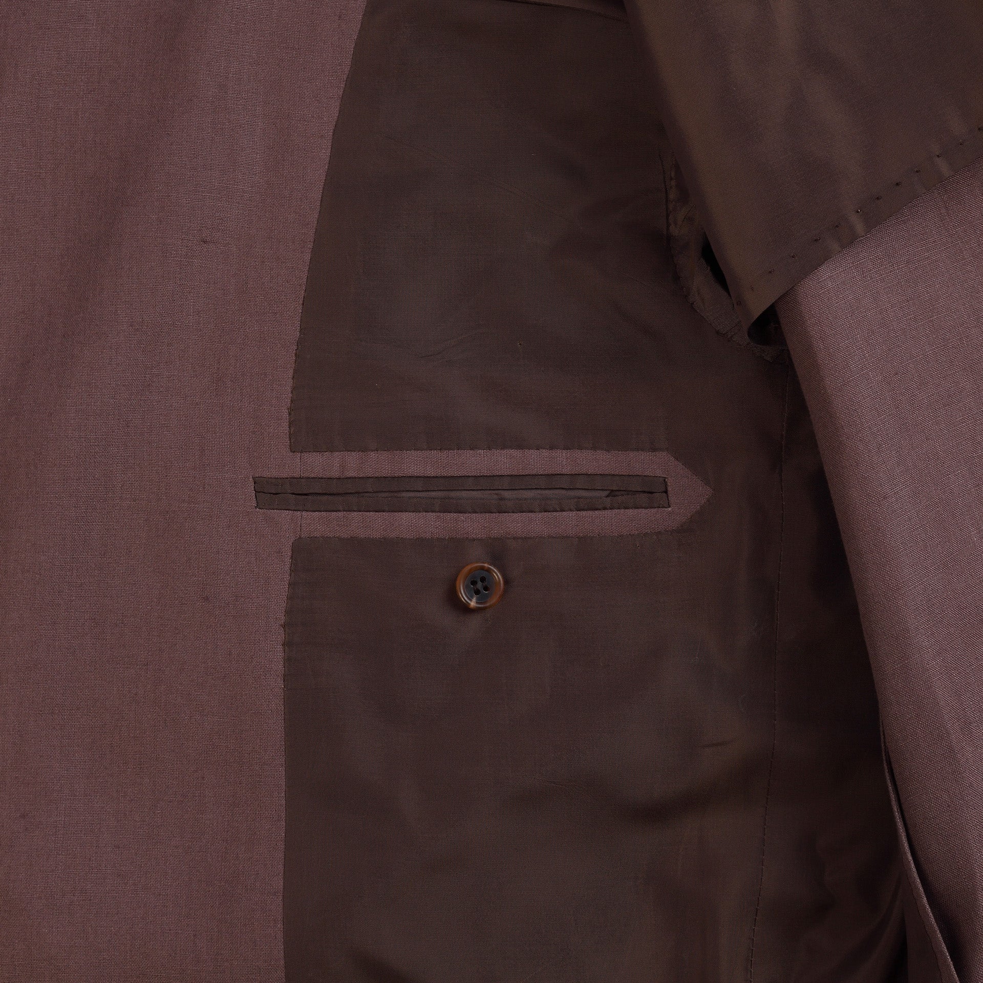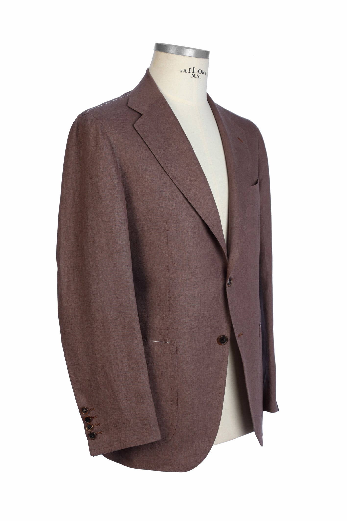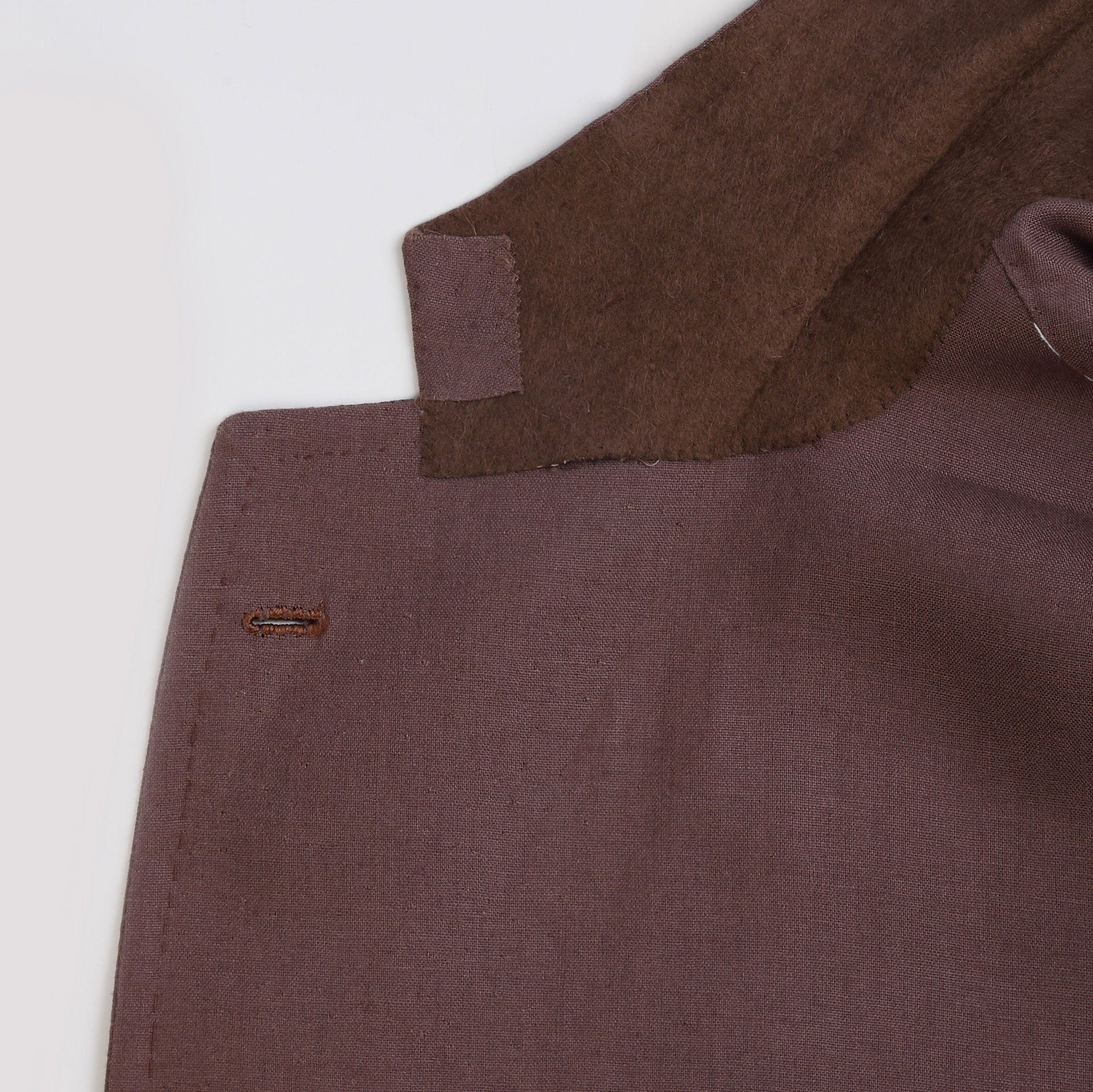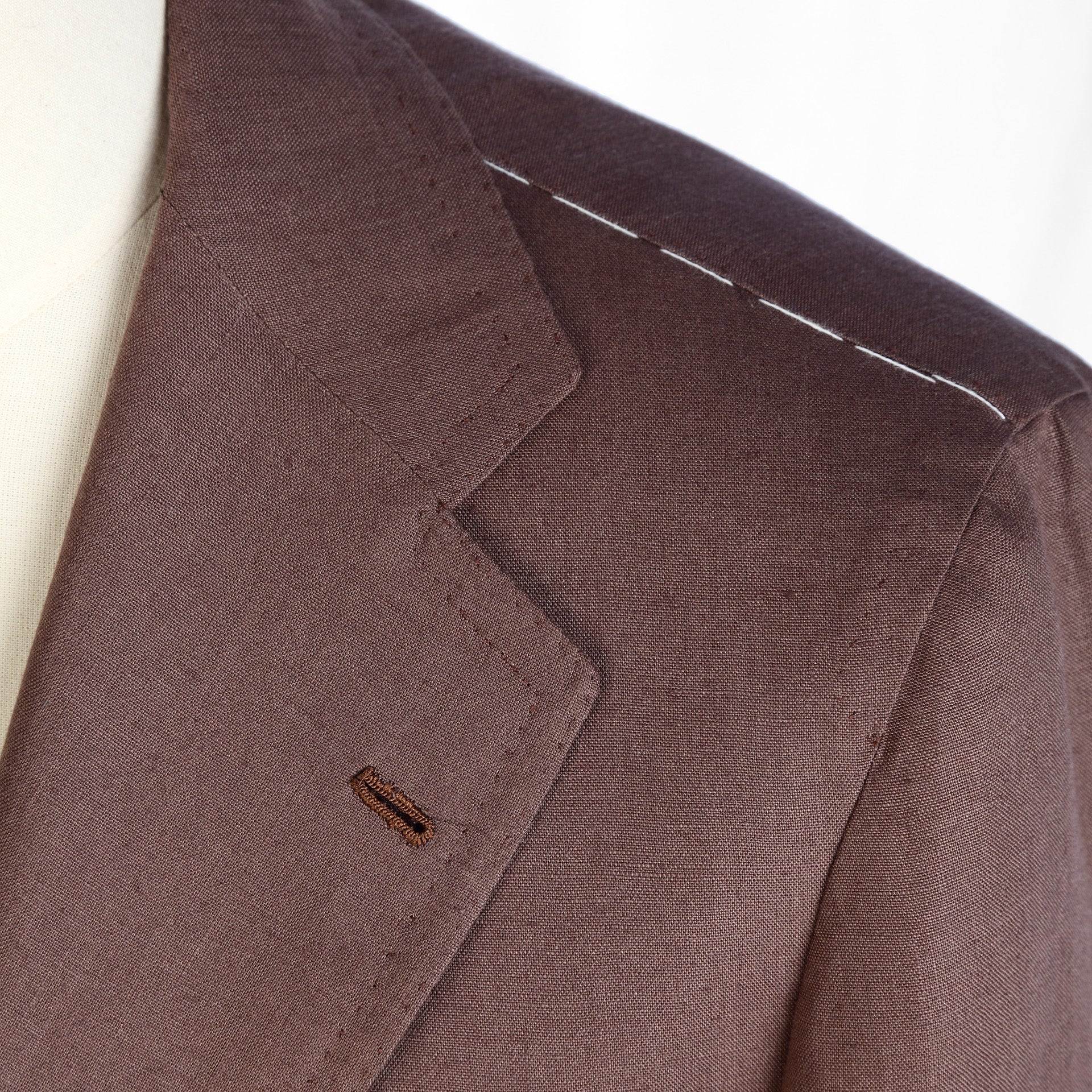 Material: Linen | Shoulder Construction: Spalla Camicia | Color: Brown | Pattern: Uni | Lining: Half Lined | Type: Single Breasted | Back: 2 Vents | Stitching: Double | Sleeves: "Fake" Buttonholes (to adjust with a local Tailor) | Fabric Weaver: Solbiati | Type: 2-buttonShare