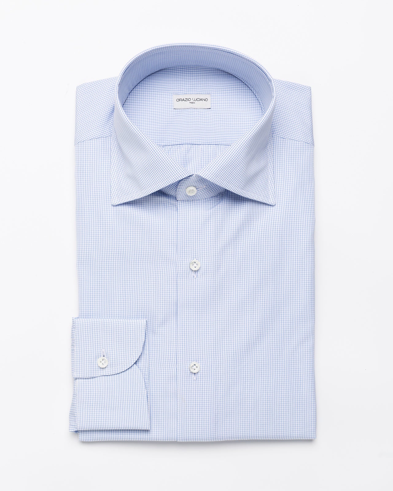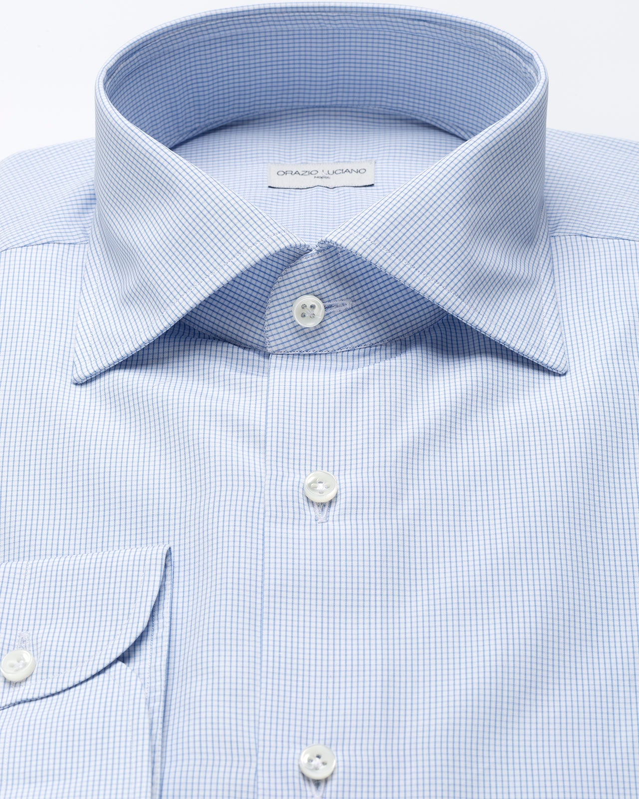 Subtelty is a hallmark of the divine. It speaks volumes of the purveyor without raising a voice or an eyebrow. This blue micro-checked white shirt made of cotton will garner perspective and depth in any ensemble while leaving room for other inspired sartorial brushstrokes. Its Neapolitan styling speaks to its permanence, while its handmade quality speaks for itself.