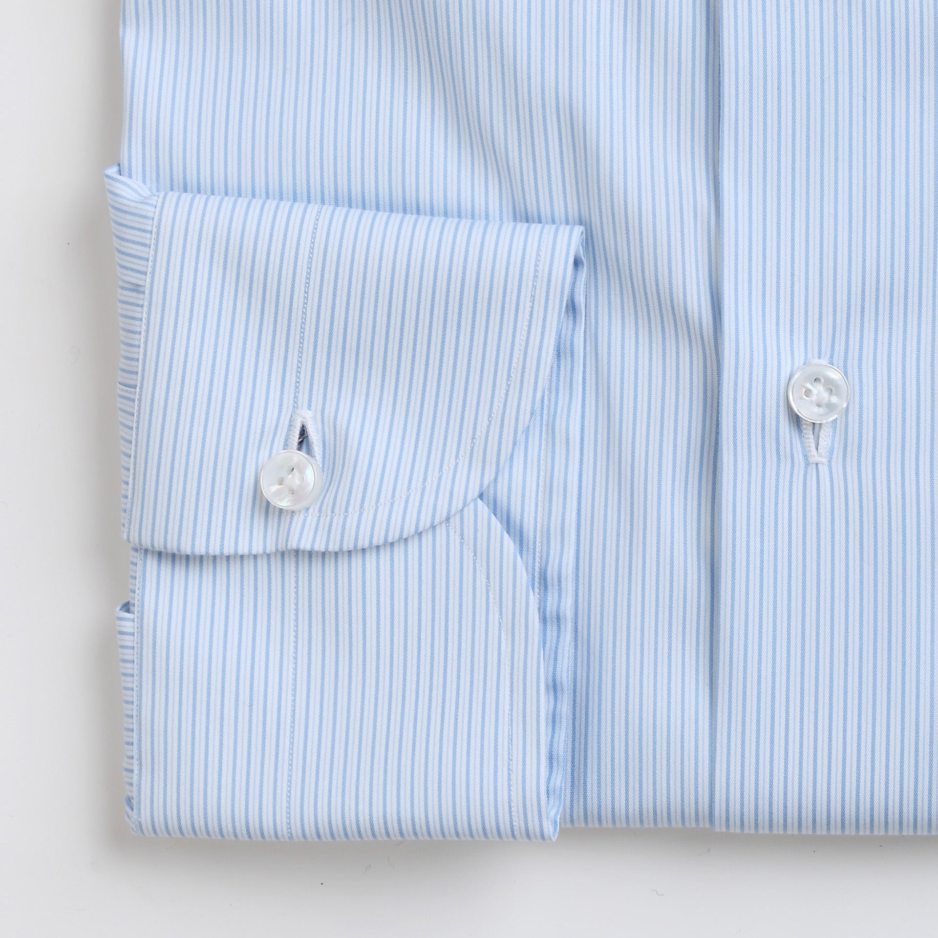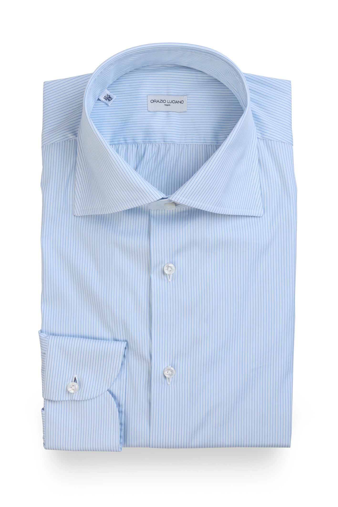 It takes a well-trained eye to select shirting fabrics that are in equal measures distinctive and versatile. In the case of this vintage striped blue and white cotton cloth, Orazio Luciano has delivered from his archival fabric collection. Consider this shirt worn underneath a navy hopsack jacket or a lightweight tan cotton suit this Summer. Whatever you choose to wear with this shirt, you will marvel at the gentle roll of the collar, the hand sewn buttonholes and natural mother of pearl buttons, all characteristics of the time honoured Neapolitan tailoring tradition.
