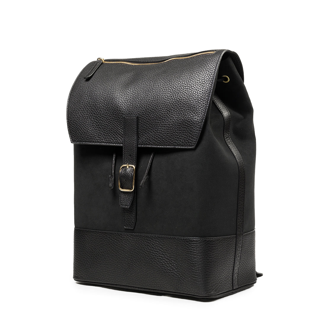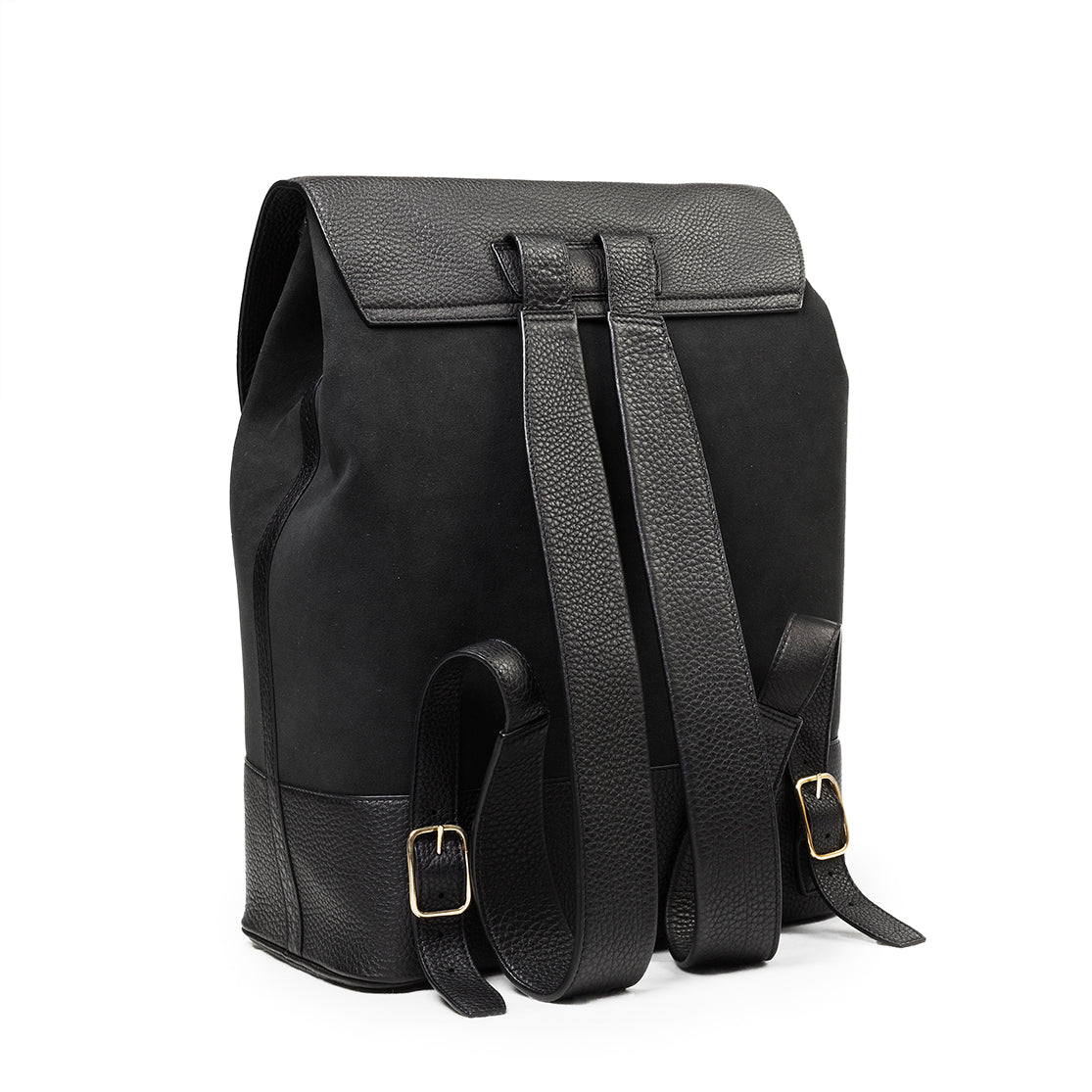 Our backpack combines a minimalist aesthetic with functional details. Crafted with meticulous workmanship from fine suede and black grained leather, it opens to reveal a capacious interior that can fit your daily kit or in-flight essentials. Pino himself uses it on his Cafe Racer motorbike – what are you going to use it for?