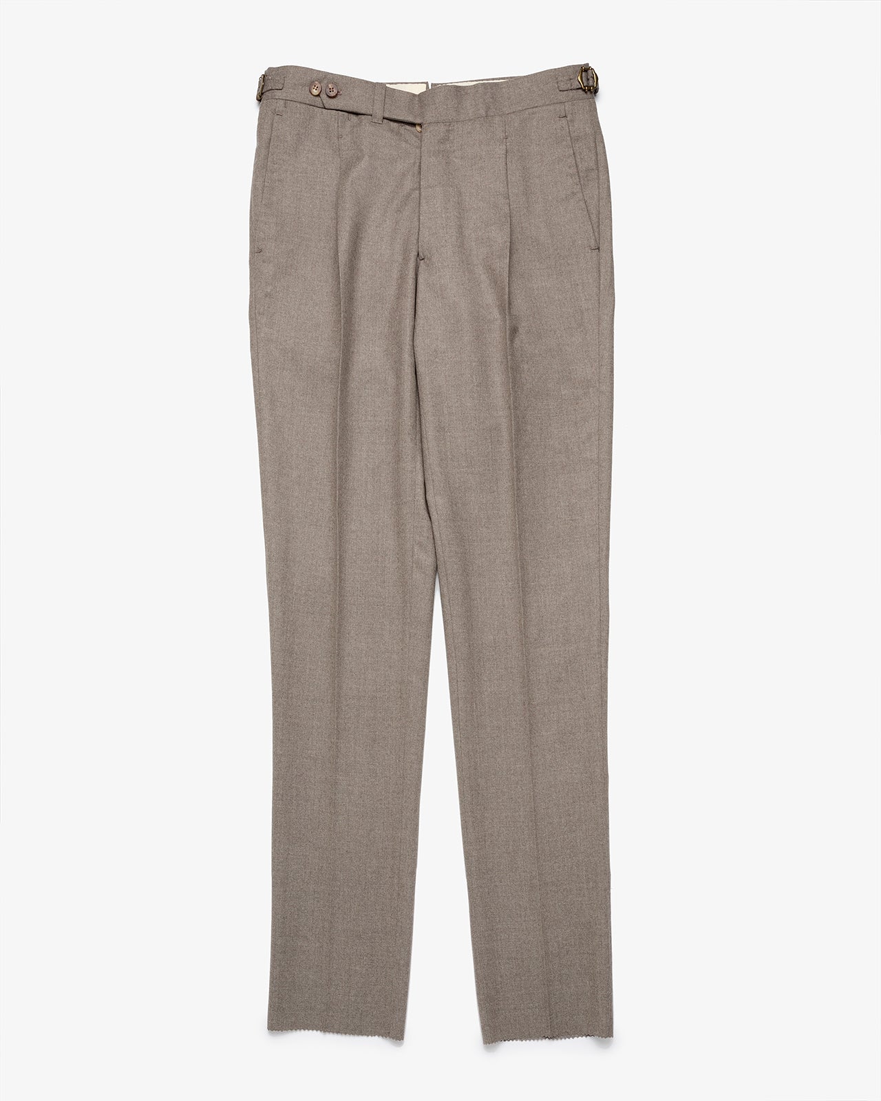 Crafted from premium wool from our friends at Drapers, these single-pleat trousers offer refined comfort. We've chosen a light beige hue that transitions effortlessly from casual to formal occasions. The tailored fit enhances your silhouette, making them the perfect expression of elevated essentialism. Pair with a crisp shirt or relaxed knit, and embrace a journey of self-expression that transcends convention.